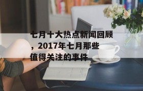 2017年七月,我国及全球范围内发生了许多引人注目的事件,以下盘点七月十大热点新闻,带您回顾那些让人...