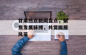导语甘肃,这片充满历史底蕴和自然风光的土地,近年来发生了许多引人瞩目的新闻事件,从经济发展到社会民生...