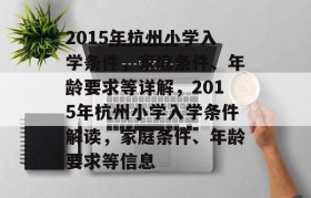 2015年杭州小学入学条件,家庭条件、年龄要求等详解,2015年杭州小学入学条件解读,家庭条件、年龄要求等信息