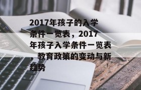 随着教育制度的不断完善和改革,对于2017年的入学条件也有了明确的规定,今天我们就来详细了解一下这些...