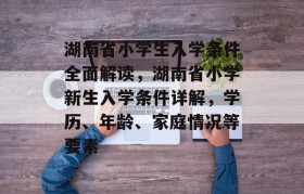 湖南省小学生入学条件全面解读,湖南省小学新生入学条件详解,学历、年龄、家庭情况等要素