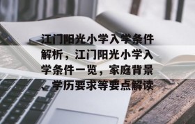 作为一所享有较高声誉的学校,江门阳光小学一直以来都在努力为广大的家长和学生提供优质的教育服务,为了让...
