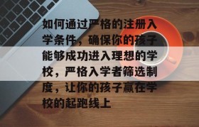 作为一名即将踏入大学校门的学子,了解和掌握学校的入学条件是非常重要的一步,西安远东一中的入学条件是怎...