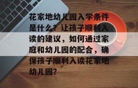 花家地幼儿园入学条件是什么?让孩子顺利入读的建议,如何通过家庭和幼儿园的配合,确保孩子顺利入读花家地幼儿园?