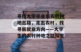 寻找大学毕业后农村种地出路,走出农村,找寻新就业方向——大学生的农村种地之路探索