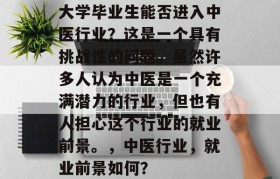 大学毕业生能否进入中医行业?这是一个具有挑战性的问题。虽然许多人认为中医是一个充满潜力的行业,但也有人担心这个行业的就业前景。,中医行业,就业前景如何?