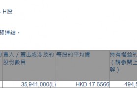 中国人寿(02628.HK)遭FMR LLC减持3594.1万股