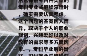 我们可以从专业方向来思考,对于专科毕业生来说,可能更倾向于选择与自己所学专业相关的专科专业,如果你的...