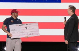 当地时间周六晚上,埃隆·马斯克在宾夕法尼亚州一个市政厅宣布,他将每天发放一张100万美元的支票,...