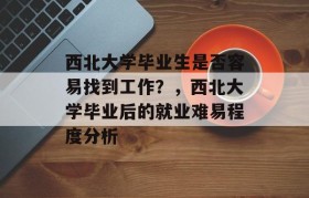 在就业市场上,大学毕业生的选择往往比他们预想的要困难得多,西北大学等知名高校的教学质量和社会声誉都不...