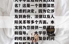 大学毕业后如何更改姓名?这是一个需要深思熟虑的决定,因为它涉及到身份、法律以及人际关系等多个方面。本文将为您提供一些建议和指导。,大学毕业后的姓名更改,复杂的问题与解决方法