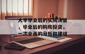 人生中有很多决定需要我们去面对和处理,而其中一个重要的决定就是购买房子,对于许多大学生来说,这可能是...
