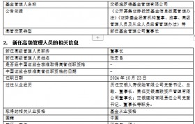 10月25日,交银施罗德基金发布关于董事长(法定代表人)任职公告,新任张宏良为董事长,新任周云康...