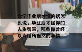 在人生的旅程中,每个阶段都有自己的特色和价值,大学毕业时,我们可能还在忙碌于工作,或是寻找人生的方向...