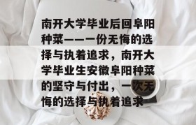 南开大学毕业后回阜阳种菜——一份无悔的选择与执着追求,南开大学毕业生安徽阜阳种菜的坚守与付出,一次无悔的选择与执着追求
