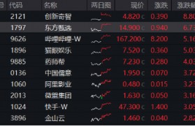 今日港股震荡向上,三大指数集体收红,科网方向表现较强,截至收盘,东方甄选止跌涨近7%,哔哩哔哩涨...