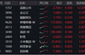 受隔夜中概股强劲表现提振,科网龙头早盘集体拉升,午后受大盘整体回落影响走势分化,截至收盘,哔哩哔...