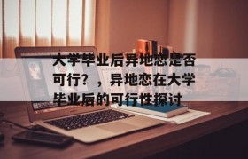 大学毕业后的异地恋,作为一个热门话题,备受关注,虽然这个问题的答案因人而异,但大部分人都认为,在某种...