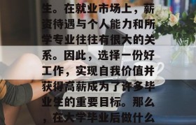 大学毕业后做什么最好赚钱?这个问题一直困扰着很多刚毕业的大学生。在就业市场上,薪资待遇与个人能力和所学专业往往有很大的关系。因此,选择一份好工作,实现自我价值并获得高薪成为了许多毕业生的重要目标。那么,在大学毕业后做什么最好赚呢?,大学毕业后的最佳赚钱途径,行业排名及发展前景分析