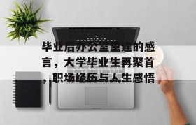 人生如梦,岁月如歌,大学毕业,意味着我们从青涩走向成熟,从懵懂走向理性的转变,毕业后的那段时光,就像...