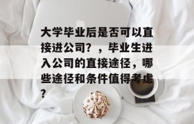 这是一个非常普遍的问题,也是许多人面临的困惑,大学毕业生进入公司的机会很多,但是这个机会的决定因素有...