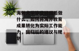 海外大学毕业回国后做什么,如何将海外教育成果转化为实际工作能力,回归后的建议与规划