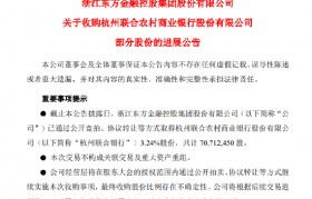 浙江东方已累计收购杭州联合银行3.24%股份 共计7071.25万股