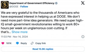 近日,美国总统当选人唐纳德·特朗普宣布由埃隆·马斯克和维韦克·拉马斯瓦米领导的“政府效率部门”(...