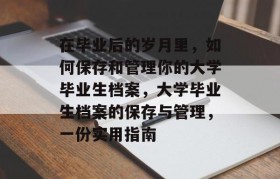 大学毕业是一个人生的重要里程碑,它标志着你从学生身份转变为社会工作者或者专业人士,在这个过程中,毕业...