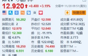 格隆汇11月20日|小鹏汽车(XPEV.US 涨3.19%,报12.92美元。消息面上,小鹏汽车联席...