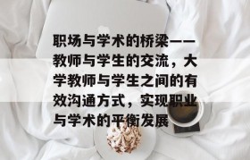 职场与学术的桥梁——教师与学生的交流,大学教师与学生之间的有效沟通方式,实现职业与学术的平衡发展