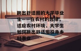 跳出舒适圈的大学毕业生——在农村的选择,适应农村环境,大学生如何跳出舒适圈投身乡村事业