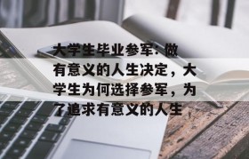 对于大学毕业生来说,有一项重要的选择就是参军,这不仅是一种职业转变,也是一种生活态度的体现,更是一个...