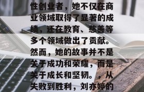 刘亦婷是一位杰出的女性创业者,她不仅在商业领域取得了显著的成绩,还在教育、慈善等多个领域做出了贡献。然而,她的故事并不是关于成功和荣耀,而是关于成长和坚韧。,从失败到胜利,刘亦婷的创业之路与人生感悟
