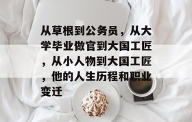 从草根到公务员,从大学毕业做官到大国工匠,从小人物到大国工匠,他的人生历程和职业变迁