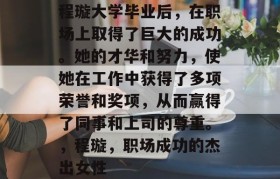 程璇大学毕业后,在职场上取得了巨大的成功。她的才华和努力,使她在工作中获得了多项荣誉和奖项,从而赢得了同事和上司的尊重。,程璇,职场成功的杰出女性