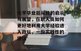 随着社会的发展和经济的进步,大学毕业生从政已经成为了一种常见的现象,对于一些人来说,从政不仅可以实现...
