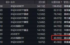 聚焦A500基金大战:嘉实中证A500ETF规模48.9亿元,位居同类倒数第二名,仅比成立3年的泰康基金强点儿