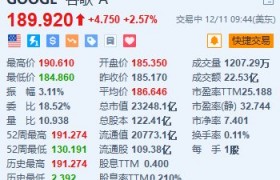 谷歌A(GOOGL.US 续涨超2.5%,报189.92美元。该股昨日收涨约5.6%。消息面上,谷歌...