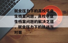 如今的社会发展日新月异,人们的生活节奏越来越快,在这样的背景下,许多毕业生面临着就业的压力,有一个重...