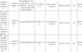 12月16日金融一线消息,中国人民银行广东省分行行政处罚决定信息公示表(2024年12月4日)显...