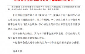 12月18日金融一线消息,北京银行发布公告,董事会于近日收到李心福提交的书面辞职报告。因工作原因...