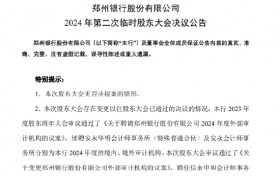 12月18日金融一线消息,郑州银行发布2024年第二次临时股东大会决议公告称,此次股东大会存在变...