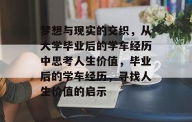 梦想与现实的交织,从大学毕业后的学车经历中思考人生价值,毕业后的学车经历,寻找人生价值的启示