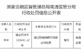 12月19日金融一线消息,国家金融监督管理总局南通监管分局行政处罚信息公开表显示,李华因通过欺骗...