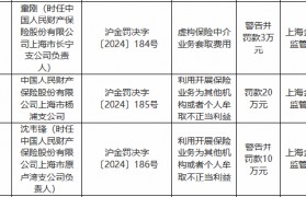 人保财险上海市杨浦支公司被罚20万元:利用开展保险业务为其他机构或者个人牟取不正当利益