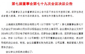 12月26日金融一线消息, 浦发银行今日发布公告表示,根据分工调整,公司行长谢伟不再兼任董事会秘...