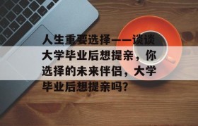 人生重要选择——谈谈大学毕业后想提亲,你选择的未来伴侣,大学毕业后想提亲吗?