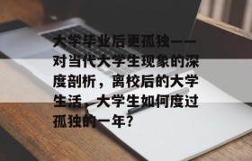 随着我国教育体制的不断发展和完善,越来越多的大学生毕业步入社会,与之相伴的是,他们所面临的孤独感也在...