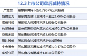 据统计,12月3日,盘后包括广立微、新锦动力、崇德科技、伟星股份、亚振家居、隆达股份、中金黄金、...